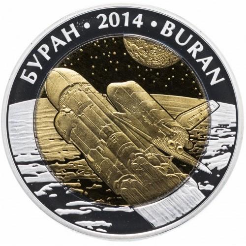 500 тенге 2014 года, Казахстан, "Буран", Биметалл: центр - тантал, кольцо - серебро 0.925, Тираж 3 000 штук.