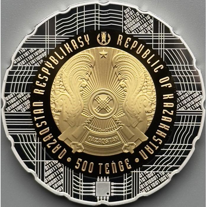 500 тенге 2023 года, Казахстан, "30 лет Казахстанскому тенге", 1 тройская унция серебра 925 с золотым покрытием, Тираж 2 000 штук.