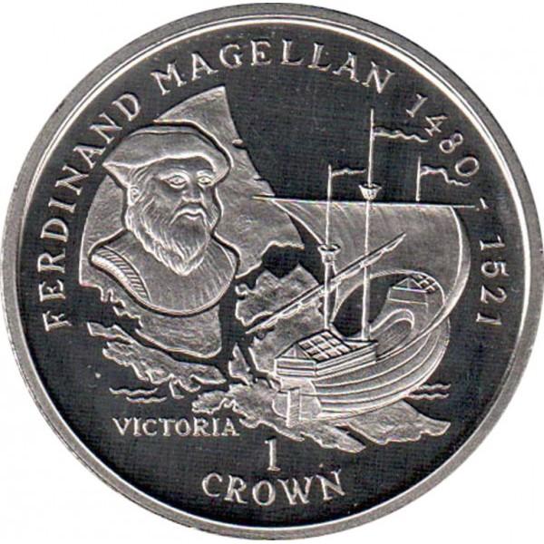 1 крона 1996 года, Остров Мэн, "Мореплаватели - Фернан Магеллан", CuNi.