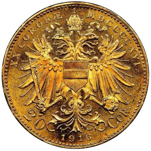 20 крон 1916 года, Австрия, 6,78 грамм золота 900.