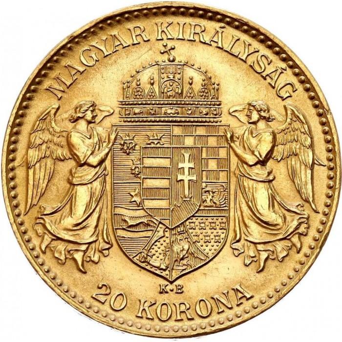 20 крон 1914 года, Венгрия, 6,78 грамм золота 900.