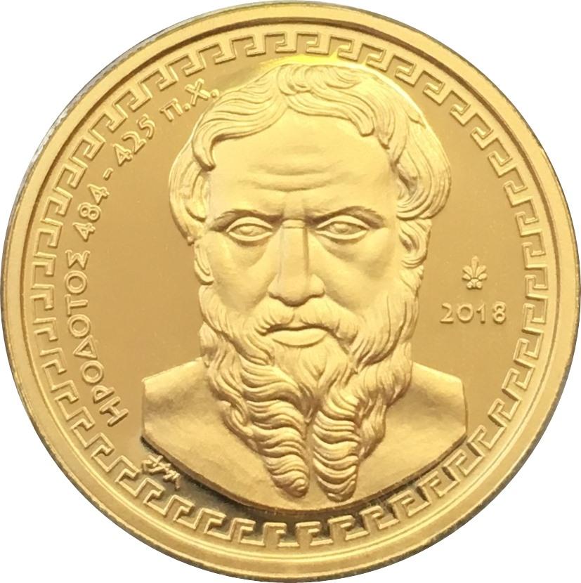 200 евро 2018 года , Греция, "Геродот", 7,98 грамм золота 917, Тираж 1 000 штук.