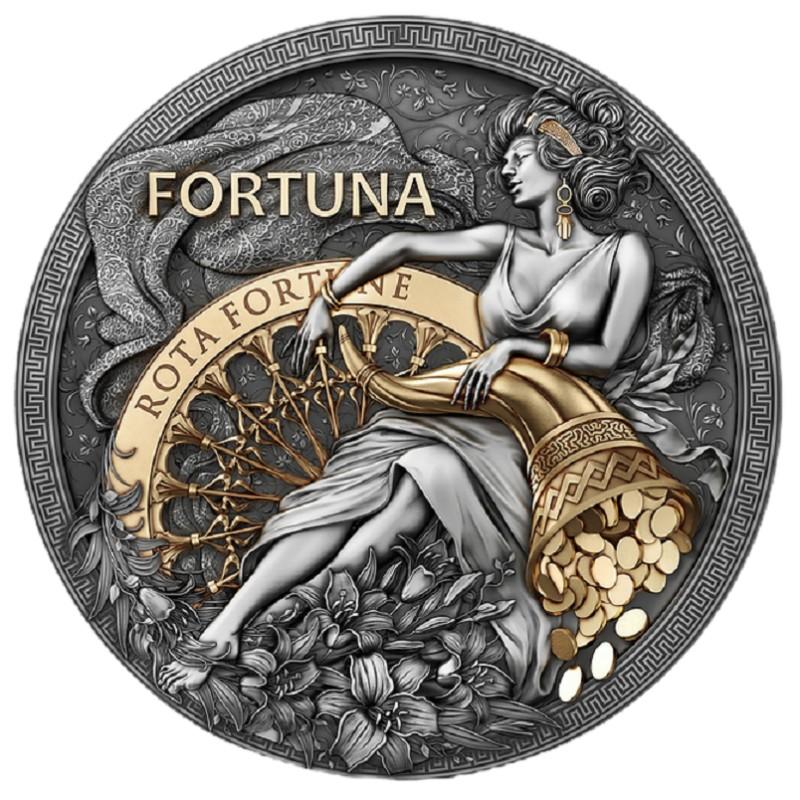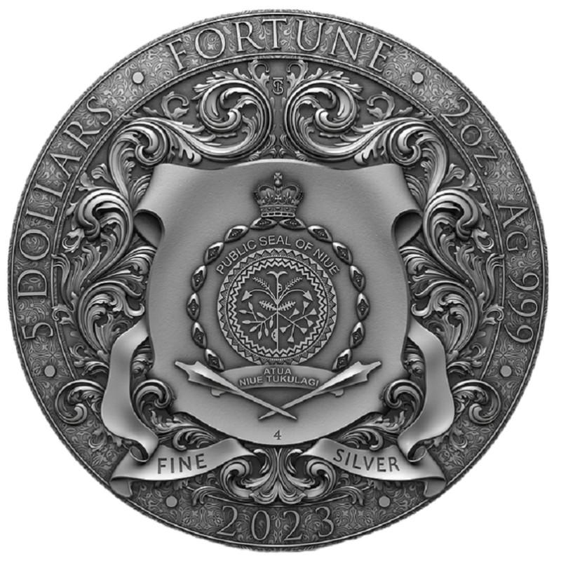 5 долларов 2023 года, Ниуэ, "Фортуна", 2 тройские унции серебра 999, Тираж 500 штук.