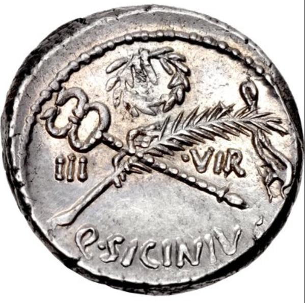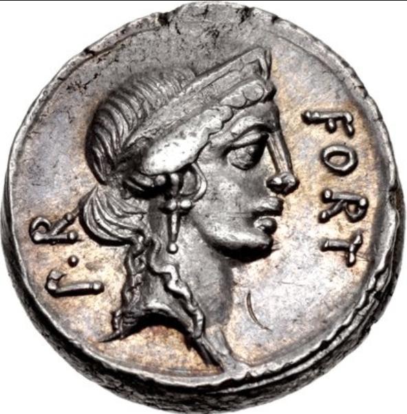 Фортуна римского народа на денарии начала Гражданской войны 49—45 гг. до н. э. Начало 49 года до н.э. AR Denarius (17 мм, 3,91 г, 1 ч). Римский монетный двор. (Из Римской императорской коллекции Голдмана.)