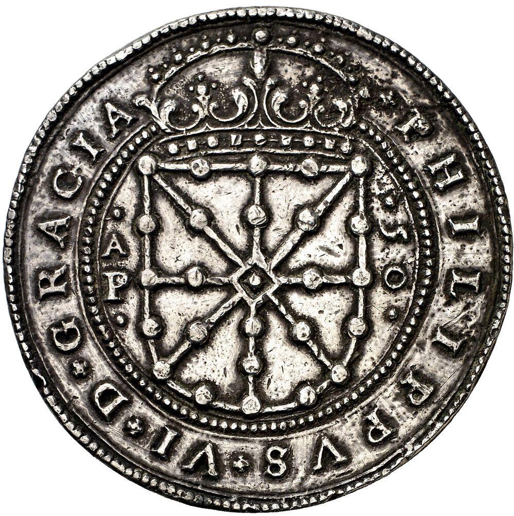 50 реалов 1652 года, Королевство Наварра (Испания), Philip IV, 170 грамм серебра 930, Монетный двор: Памплона, Испания.