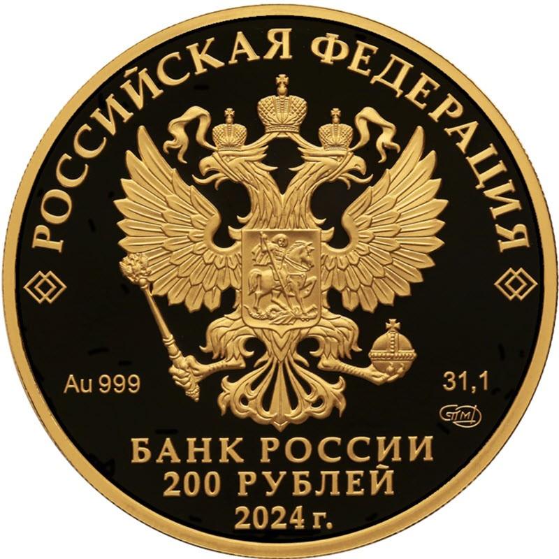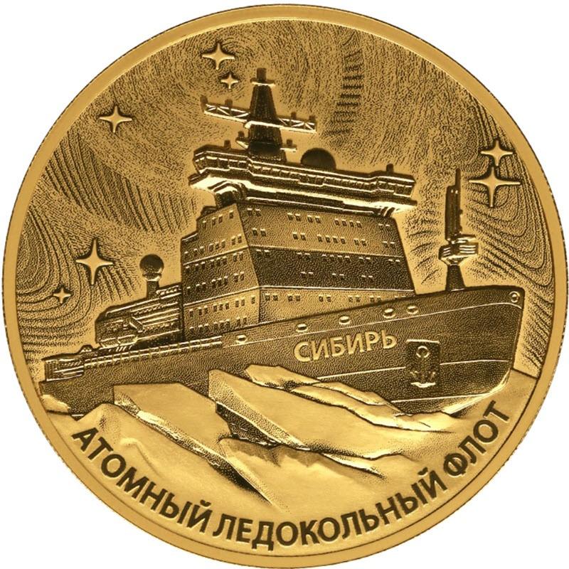200 рублей 2024 года, Российская Федерация, "Атомный ледокол "Сибирь"", 1 тройская унция золота 999, Тираж 500 штук.