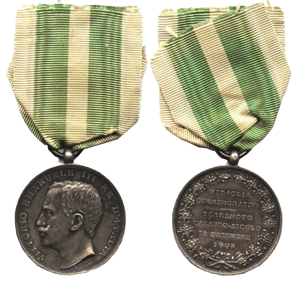 Русские моряки, участвовавшие в спасении после катастрофического Мессинского землетрясения 1908 года, были награждены итальянскими серебряными медалями с надписью «В память бедствия, постигшего Мессину и Калабрию».