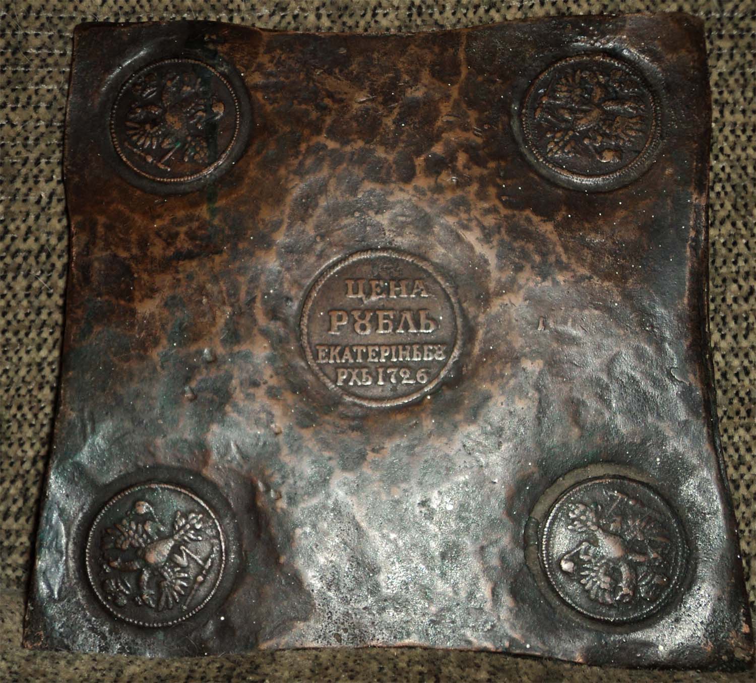 Квадратная плата 1 рубль 1725г. Екатеринбург