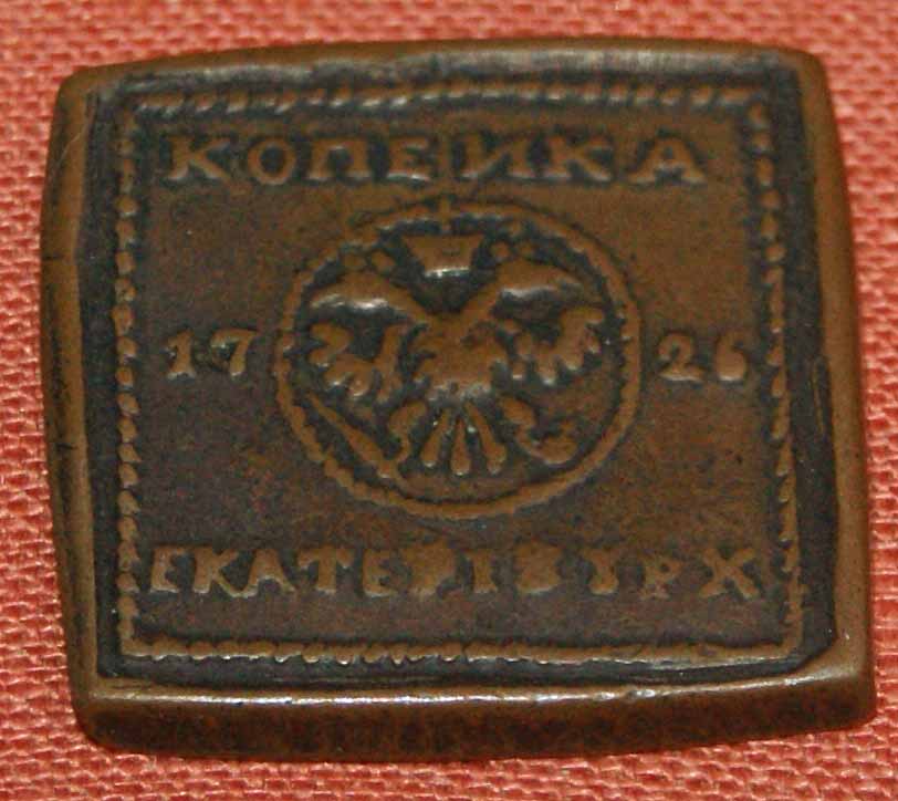 Квадратная плата 1 рубль 1725г. Екатеринбург