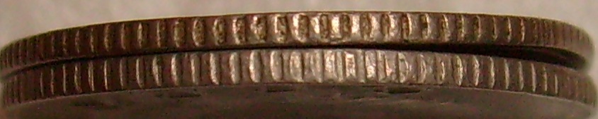 Гурты на фото -одинаковых по штемпелям монет.-верхний гурт .это гурт обсуждаемой монеты.