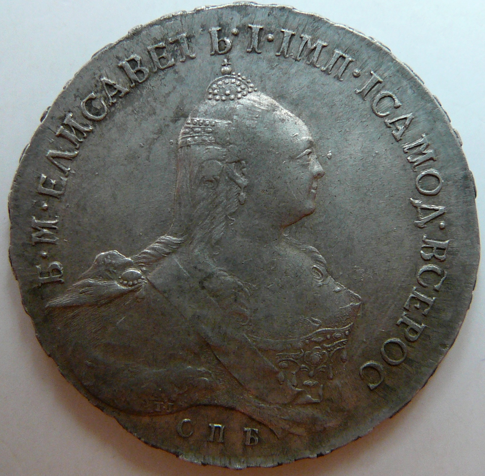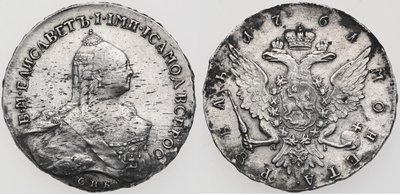 1 Рубль 1761 г. СПБ-ТI-ЯI. (Длинный локон на правом плече):