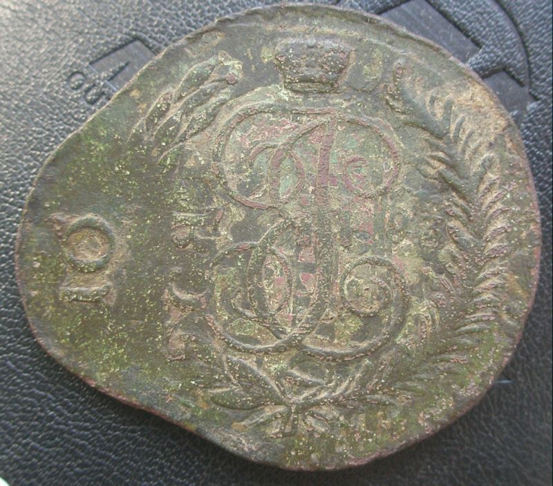Пятак Екатерины II, двойной перечекан. Интересный брак.