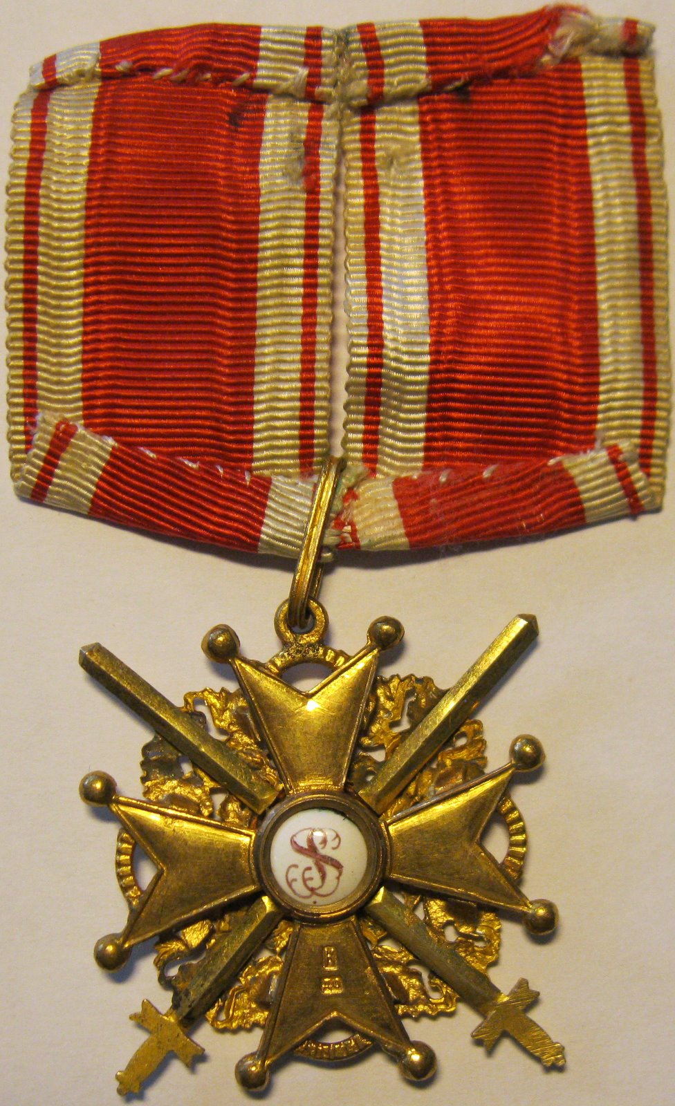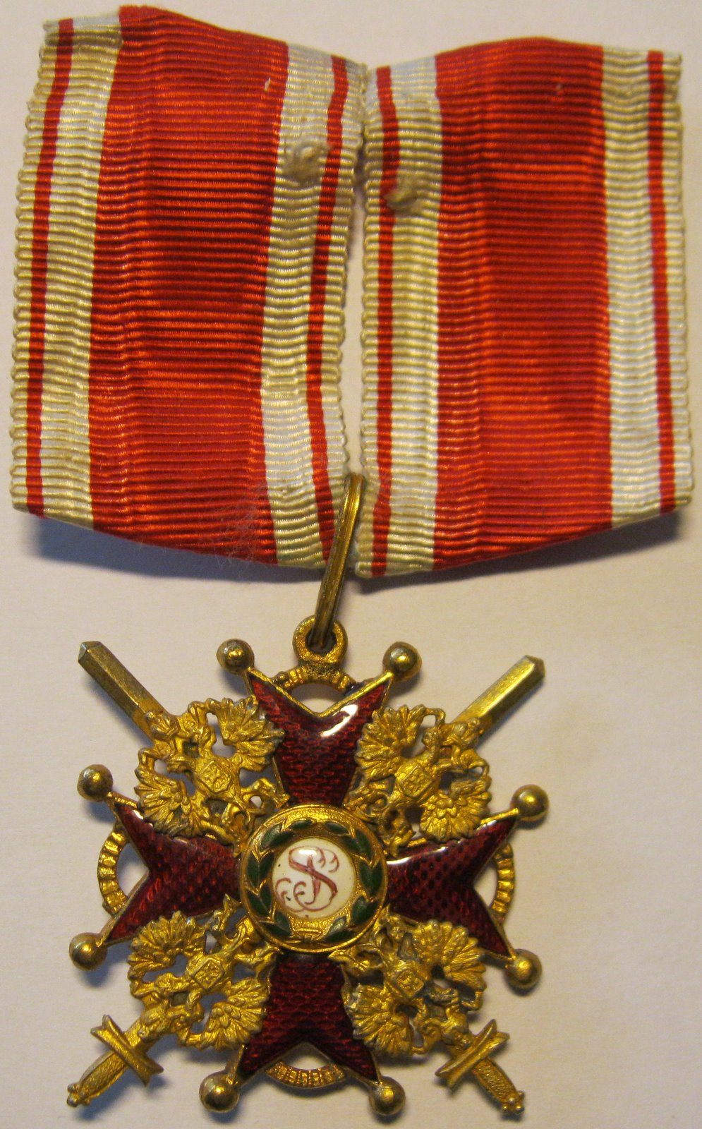 Имелась в виду низшая, 3-я степень, для ношения на груди ("в петлице", как писали классики). С мечами - для военных.