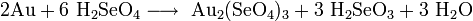 * Горячая, концентрированная селеновая кислота способна растворять золото, образуя красно-желтый раствор селената золота(III):