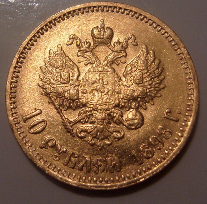 1.10 рублей 1898 г. Портрет на монете соответствует по типу обычным монетам периода 1900 - 1911 гг. (голова большего размера, портрет рельефный). При этом буква "Г" в инициалах минцмейстера на гурте монеты "АГ" имеет справа длинную гасту, не встречающуюся у обычных подобных тиражных монет. Такая монета с датой "1898" довольно редка, во всяком случае, при цене обычной десятирублевки порядка 13.000 рублей, такие монеты продавались (и реально покупались) по 20.000 рублей. Правда, на сегодняшний день цена такой монеты вряд ли ощутимо выросла.