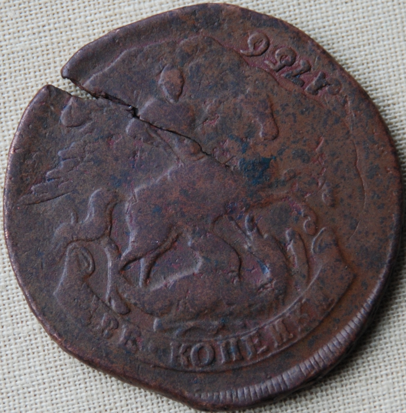 2 копейки 1758 перечекан из обл.коп. СПБ 1756 + передатировка