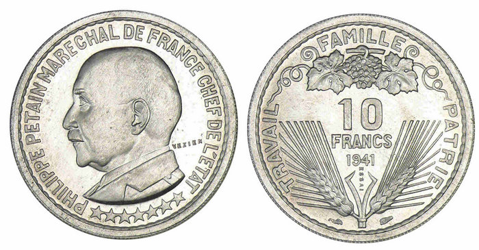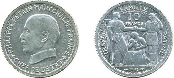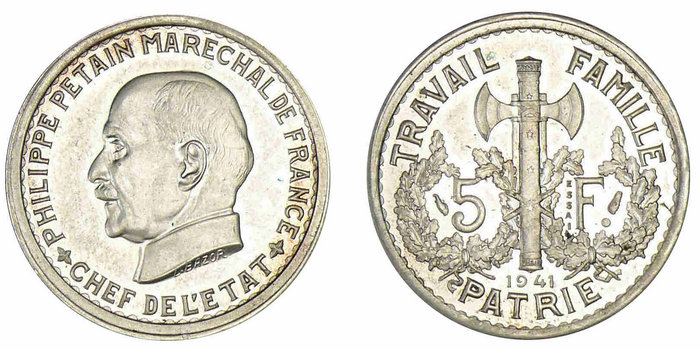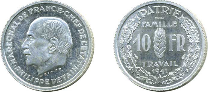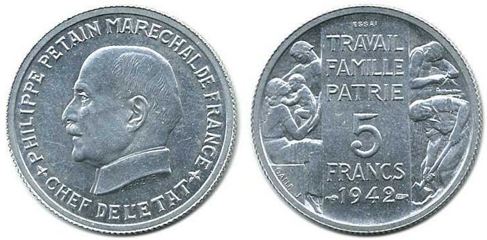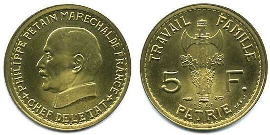 Единственная приличная монета вишистской Франции. Не считая заоблачных пробников, конечно. Я ещё в затёртых каки-то годах на рубеже тысячелетий 80 баксов на еБее за такую платил. Сейчас и за 300 не найти :unsure: