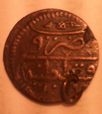 Это или Индия какая-то старая мусульманская, или, скорее, жетон - имитация монеты. Мне больше на жетон кажется похожей, но я профан в этом, не могу судить. Да подождите чуть, атрибутируют ее.