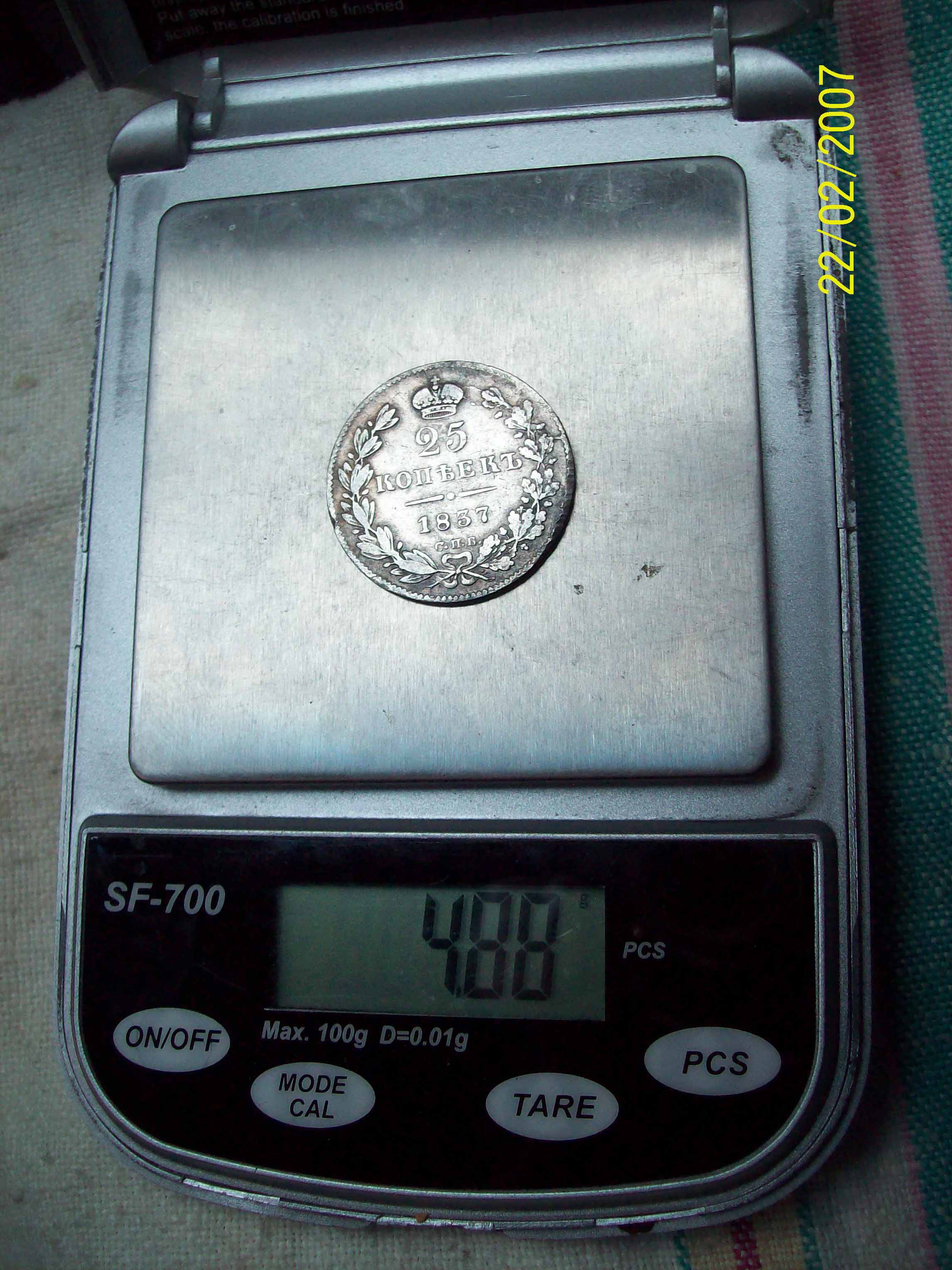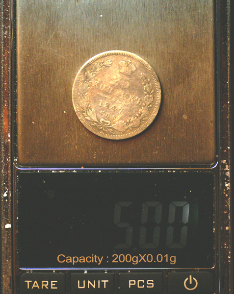 Я не уверен что русско-польские монеты шли по стандартам банковского серебра, но если и так, то вот смотри - 25-копеечник, ушатанный в обмылок, просто тонкий. Едва читается. 5 граммов, и то мои весы слегка врут вниз