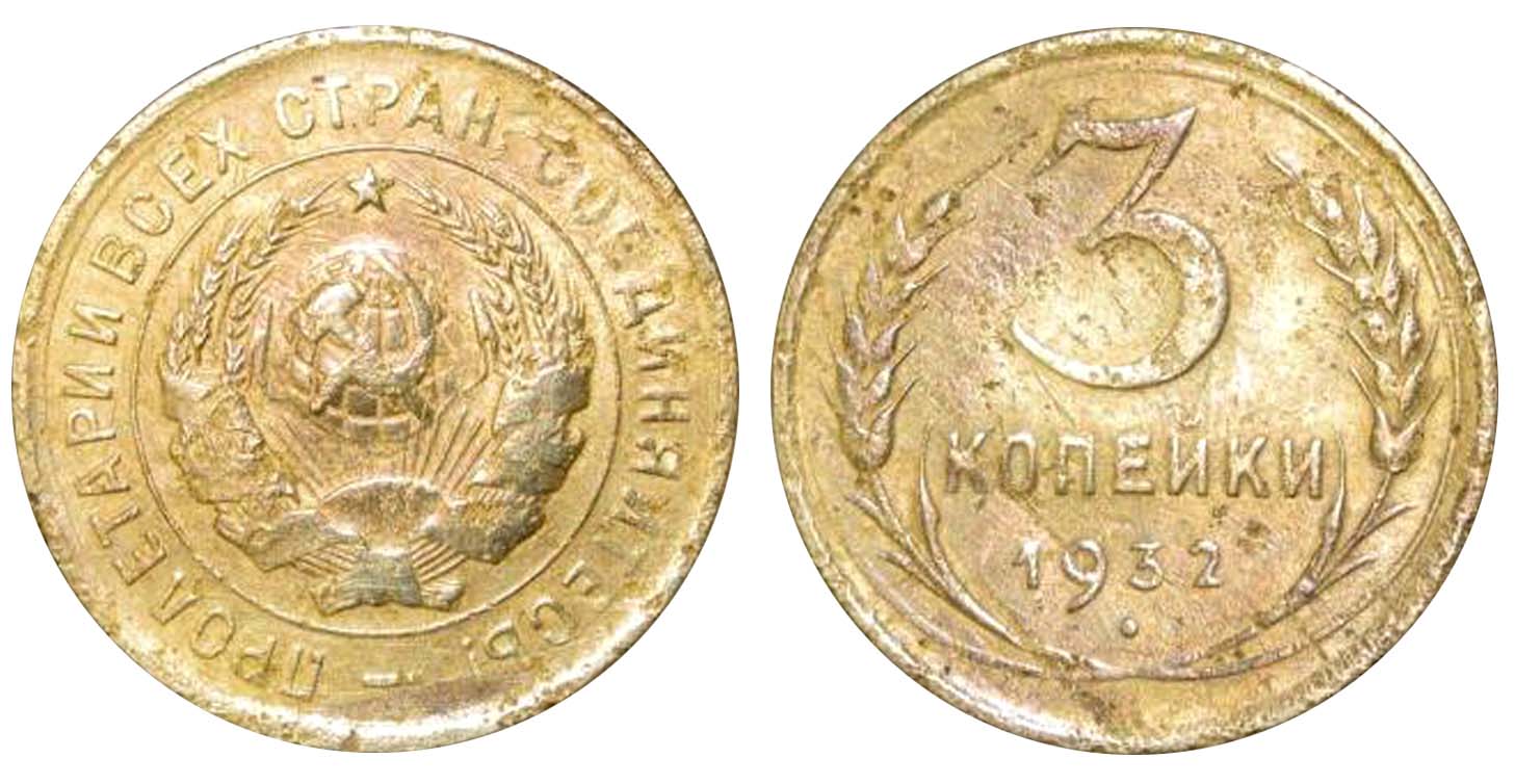 3 копейки 1932 вместо СССР - прочерк