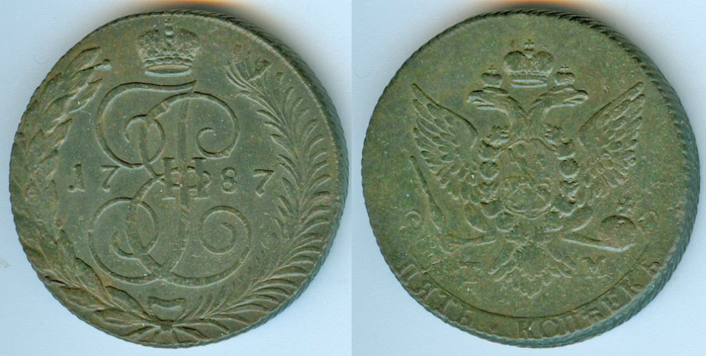 Прошу оценить данную монету-5 копеек 1787г. ТМ,гурт сетчатый.