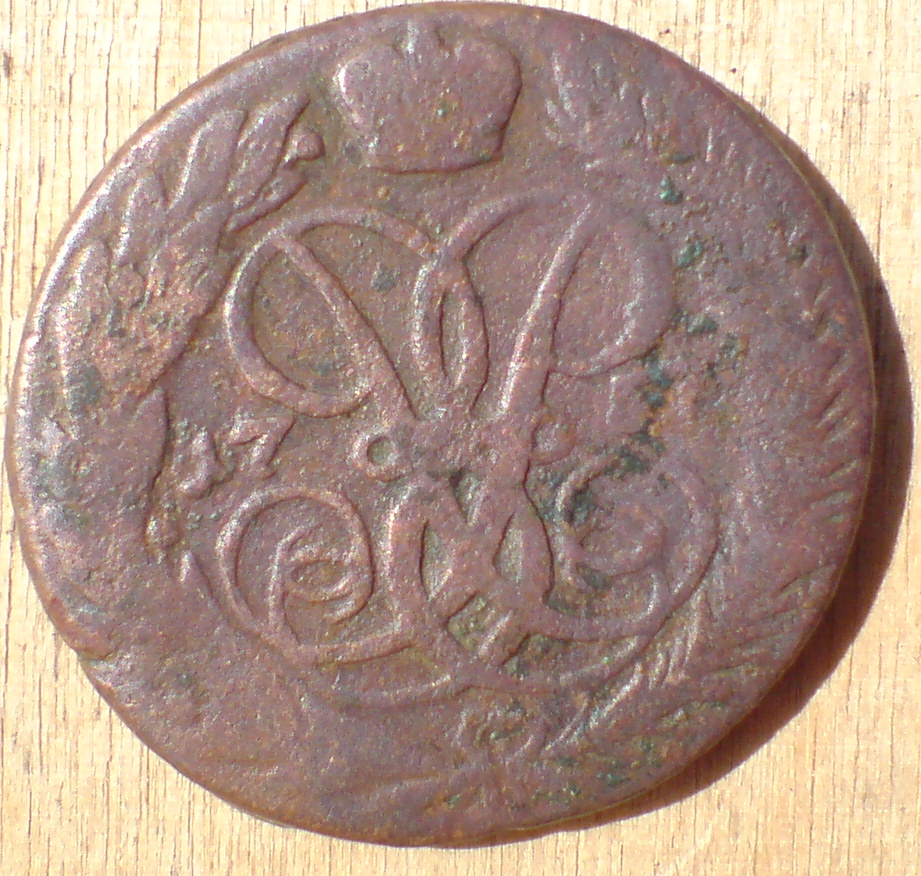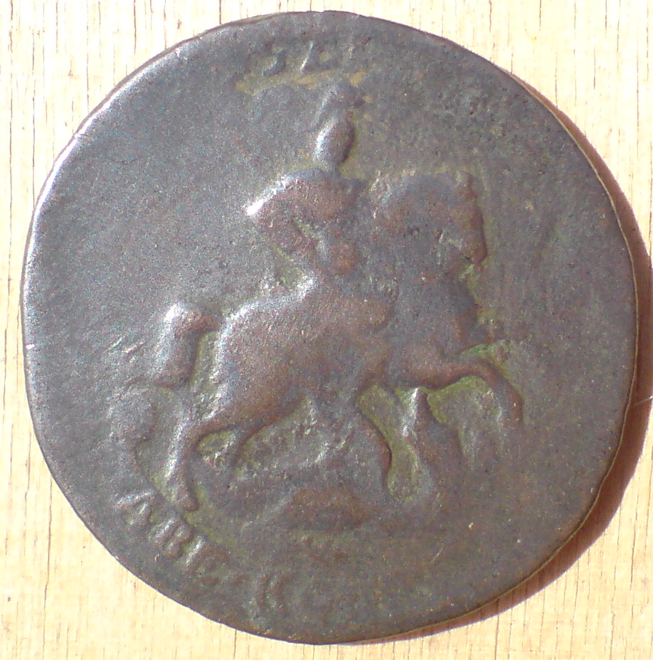 а что за год пробивается на монете в 2 копейки 1757г над всадником ?