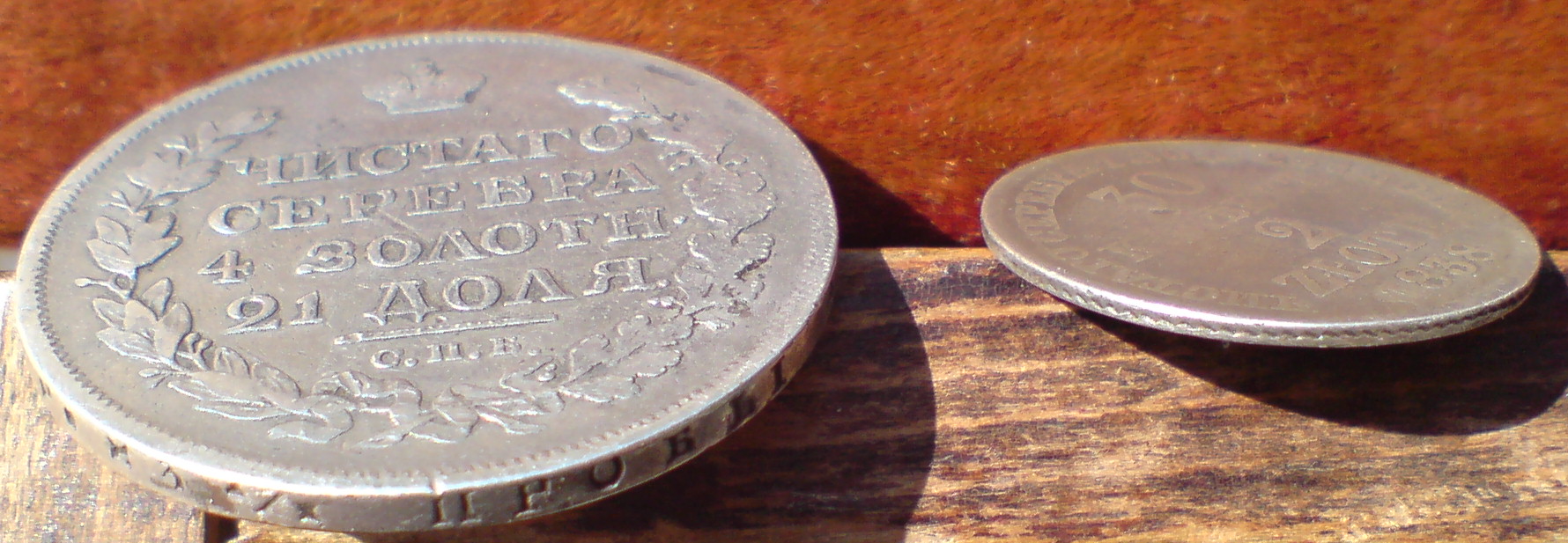 и Последний пост 1842г и гурт рядом с монетой рубль 1831г