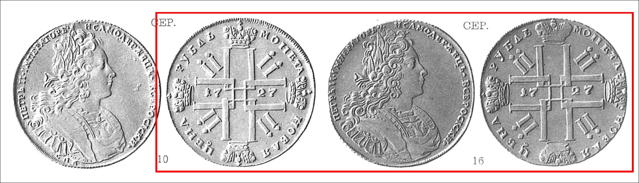 Вот на этой монете гурт № 1. т.е. тот гурт который встречается на всех рублёвиках СПб 1727 года Петра Второго.